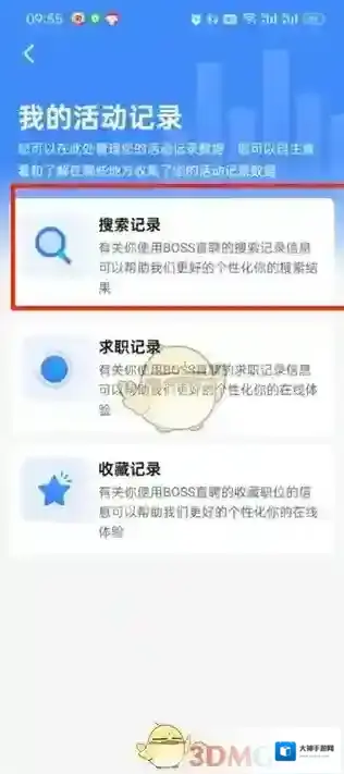 5、在活动记录管理的页面中可以看到有搜索记录、求职记录、收藏记录,我们点击搜索记录;