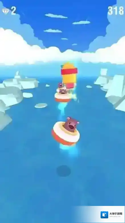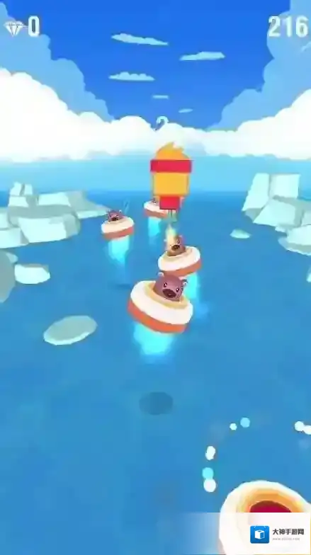 2、闯关时,持续左右滑动操控,避开冰块障碍,收集蓝色宝石,保持堆叠稳定,推进关卡进程。