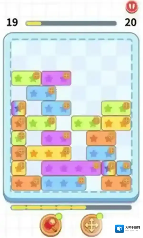 3、下方有道具(如锤子),点击使用可清除阻碍方块,合理利用道具,突破关卡获取高分。