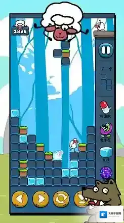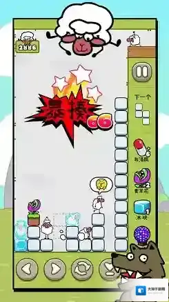 2、针对羊的策略:关注羊出现的位置,调整方块落点精准压扁;多只羊同列时,堆高方块一次性消除该行,高效得分。
