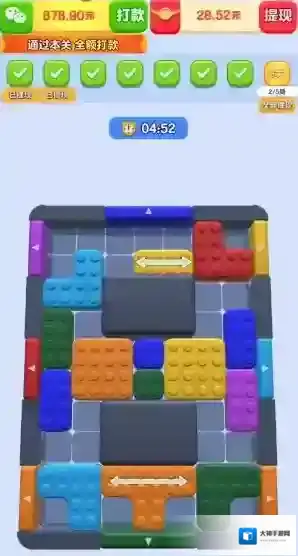 快点挪出来,一款益智休闲的趣味闯关游戏,整体的玩法类似于华容道。在游戏中,我们需要通过移动方块来将它们全部移除场景,根据对应颜色的出口来移出对应的方块,以此类推,成功移出所有方块后即可过关获得奖励。游戏的玩法还是比较新颖的,并且挑战起来也很有意思,虽然上手有一点点难度,但是熟悉起来后会感觉非常的好玩!