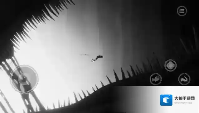 游戏的氛围很不错,能探索的区域也比较多,操作比较简单,游戏没有采用互动性更强的三维场景,也没有采用高档的开发引擎来塑造逼真的3D画面,而是使用了简约单调的二维场景和像是用铅笔画出来的手工式画面,但这并不影响游戏的沉浸体验,相反,这些场景与游戏的氛围恰恰是相辅相成的,只有黑白的色调与海底的氛围结合起来,配合上游戏内精心设计的背景音乐,给玩家一种寒冷、肃杀、没有任何生机的死亡之地的感觉。