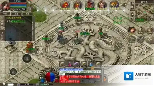 3、各大地图均可以挂机升级,精英怪物还可以爆出火龙珠,让主号和英雄都能获得2W经验,升级超级轻松。