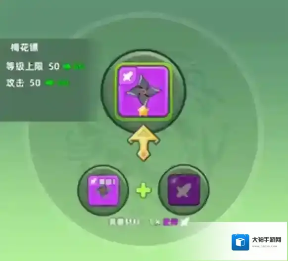 合成更高级别装备需特定材料和主体装备,如紫色1星梅花镖需紫色0星梅花镖和紫色0星武器作为材料。