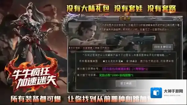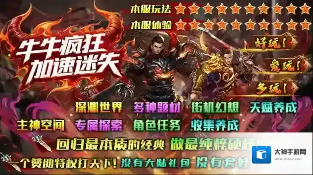 牛牛疯狂加速迷失,195攻速超变单职业版本,一个赞助特权打天下,没有任何大陆礼包,上线就是砍,简单易懂,没有任何套路!本服回归最本质的经典玩法,做最纯粹的超变,所有装备都可爆,让你找到从前那种心跳加速的快感!每个大陆都有着自己独特的全新玩法,让你尽情的享受探索乐趣!更有深渊世界、主神空间、幻想世界等多种题材等你体验,各种精彩玩法激情无限!
