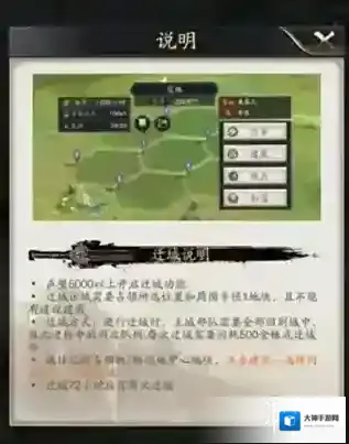 5、在展开的势力地图上,通过拖拽/点击选择目标坐标点,系统将自动校验,校验通过后确认执行,即可完成城池迁移。