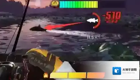 当你扔出鱼饵时,卷线轮上方会显示一个进度条和移动的光标。