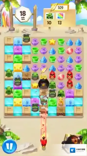 3、例如红怒鸟就能够消除一行或者一列图案。