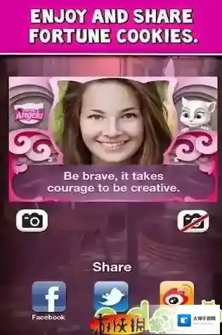 – 使用心形按钮让安吉拉给你读一个签饼。