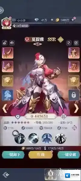 首先就是第一个角色她在这个游戏中主要担任的是魔族的奶妈角色,大家可以在这个阵容中带上他不仅可以给队友以及自己带上一个护盾,还可以把受伤的队友回复状态,做到起死回生的作用,还可以把敌人的攻击力降低一些,让敌人的伤害变低一点的自家队友就会比较轻松一点了。