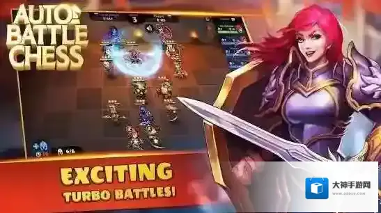 3、战斗时,在“EXCITING-TURBO-BATTLES!”场景,按箭头指引,调整英雄站位,触发自动战斗,赢取胜利。