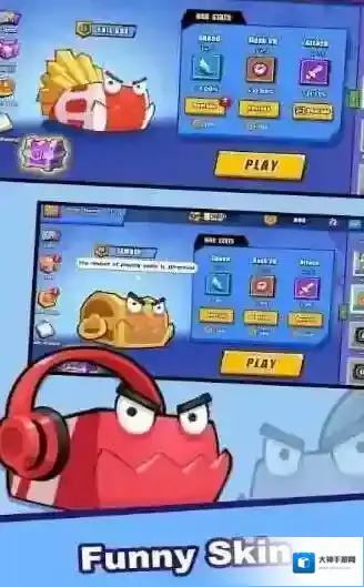 1、在角色界面,点击PLAY,选用箭头指向的角色(如薯条、卷饼造型),进入对战,体验趣味玩法。