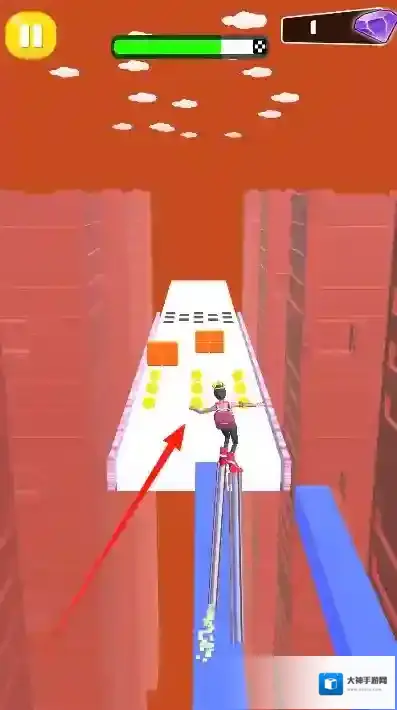 1、基础跑酷玩法:滑动屏幕控制角色左右移动,收集赛道瓷砖增高鞋跟,躲避随机出现的障碍,目标抵达终点获取星级评价。