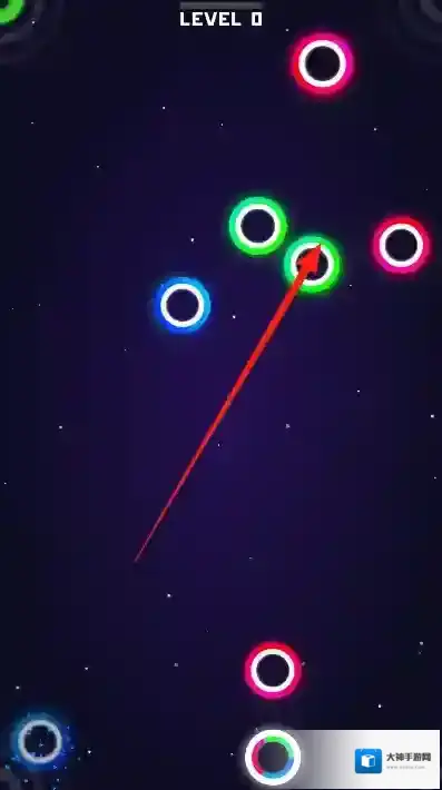 1、进入首关面对红蓝双色圆盘低速旋转,紧盯盘面变化,待两红圆盘对齐瞬间快速滑动手指连线,完成首次消除操作。