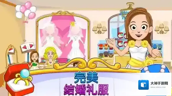 2、细节互动乐趣:在礼服店点击镜子查看穿搭效果,在蛋糕店滑动屏幕涂抹奶油,在典礼大厅点击风琴演奏音乐,让孩子感受真实婚礼的热闹氛围。