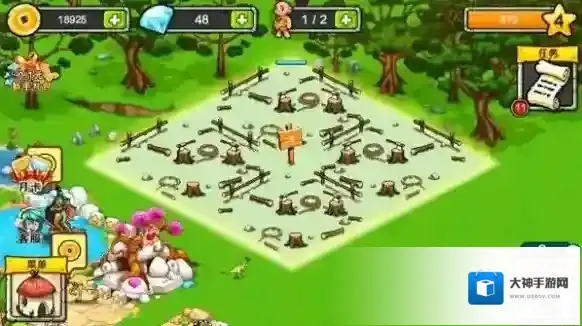 在原始森林中,玩家只需点击想要扩建的地方,并使用少数饲养员即可完成庄园扩建。