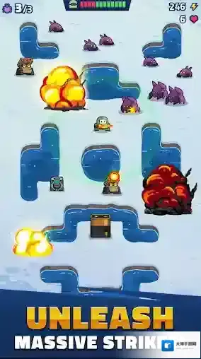 2、无尽防御:持续面对不断增强的敌人入侵,考验玩家的极限防御能力,支持全球排行榜与段位晋升,游戏还支持社交分享功能。