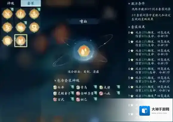4、嗜血神魂是一块适用于防御位替补的神魂,当攻击触发时,有10%的概率回复造成伤害的一定比例生命值。