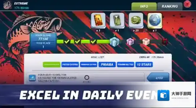 3、我们需要不断的提升自己的等级,去解锁更多的区域,解锁更多的鱼饵和鱼竿,带上来更多不同品类的鱼。