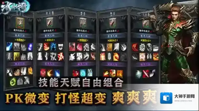 2、三职业落地解锁全部技能,所有职业落地送全屏彻地钉,更有特色天赋系统助你打造各种特色流派玩法。