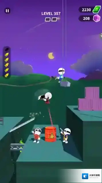 2、每一关遇到敌人后,角色就会自动跳跃,并进入慢动作。