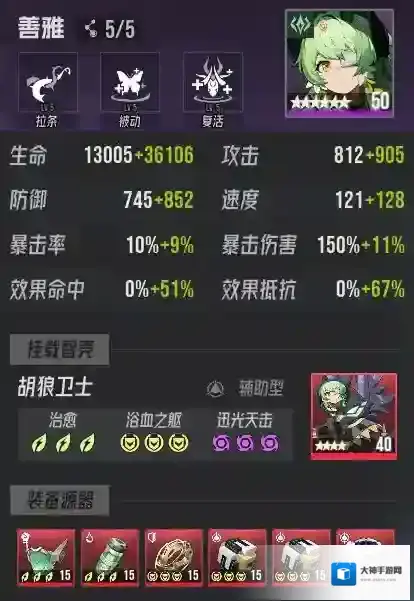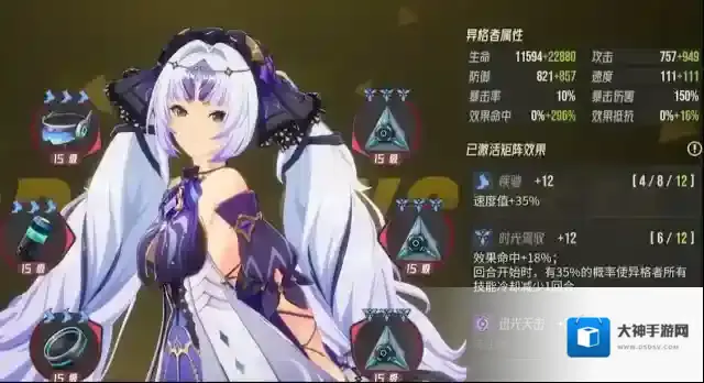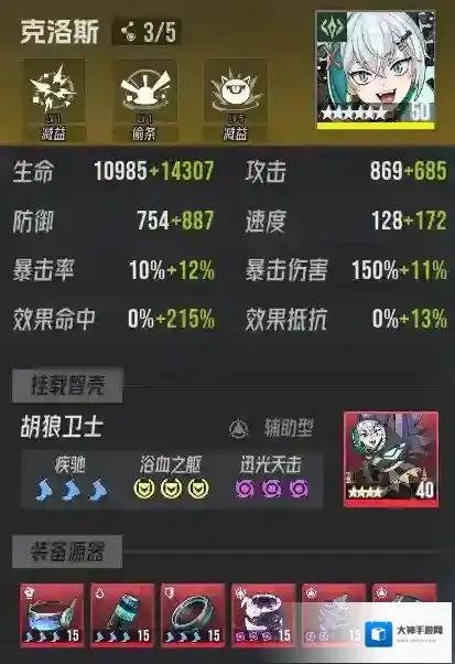 tips:缬草S3满级,其他队友回合开始前会给一个护盾+基础buff,这里基础buff是按照 加攻、加防、暴击、速度的顺序给你加的。举例,没有加攻buff则给你加攻,有加功就给你加防这个顺序,因此你可能会遇到莉莉二技能不给暗雅的情况,可以适当调整驱散的装备,比如头部不强化,这样即时加功 攻击力也大概率不会超过暗善