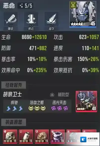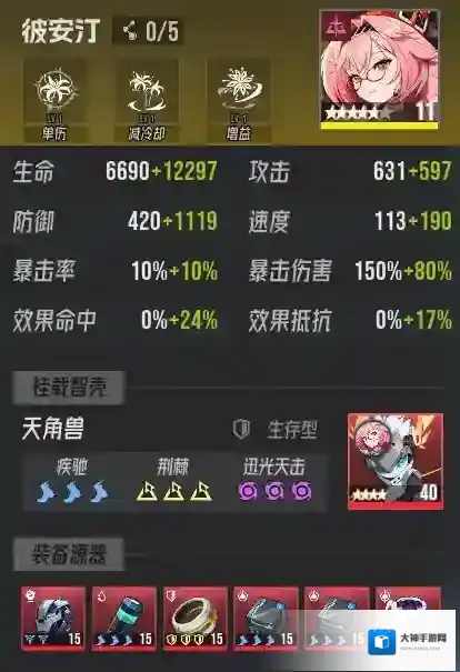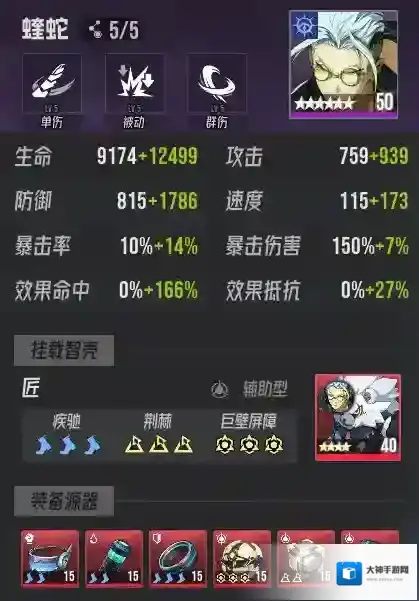 命中140%以上 速度200左右 血量2W以上、防御1500以上,在这个条件上越强越好 扛不住智壳低练度可以带匠