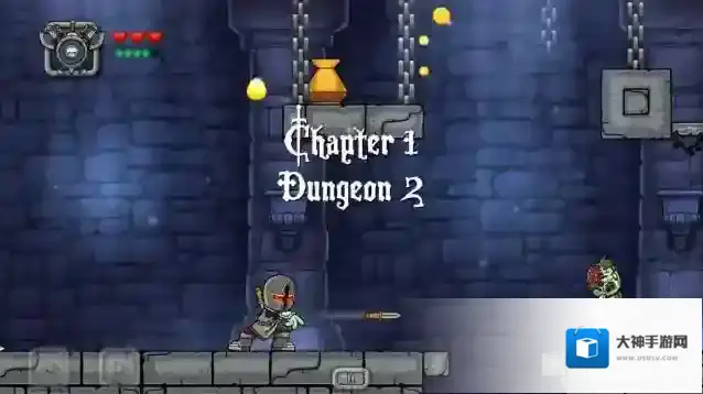 1、首先是第1个房间,跳到左边用小刀加音速戒指,衣服挑个防御高的就行,然后站在左边石头上一直扔小刀就可以了。也可以用锤子,锤子需要站在右边的石头上。