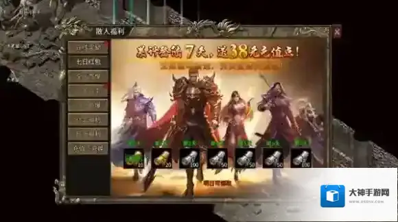 3、累计登录7天,即可获得38元充值点!天天登录,天天领取,无限循环赠送。