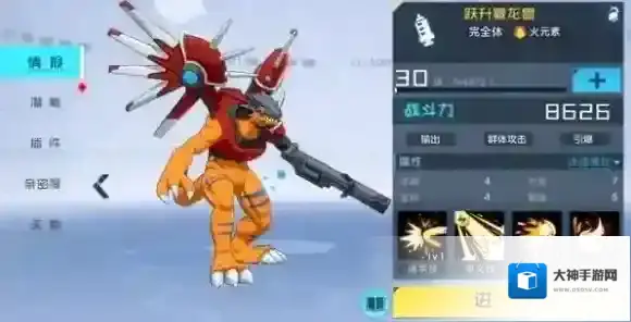 2、数码宝贝可以通过进化改变形态,提升自身的属性和技能强度。