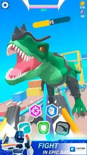 2、战斗开始后,我们将会和其他机器人进行1v1的对战,对手发动攻击的时候,点击相反方向即可闪避。