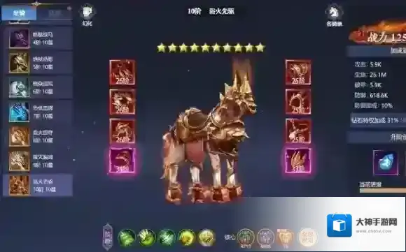 2、消耗冰霜兽灵、浴火兽灵、月影兽灵,均可让坐骑获得属性加成,从而提升战力。