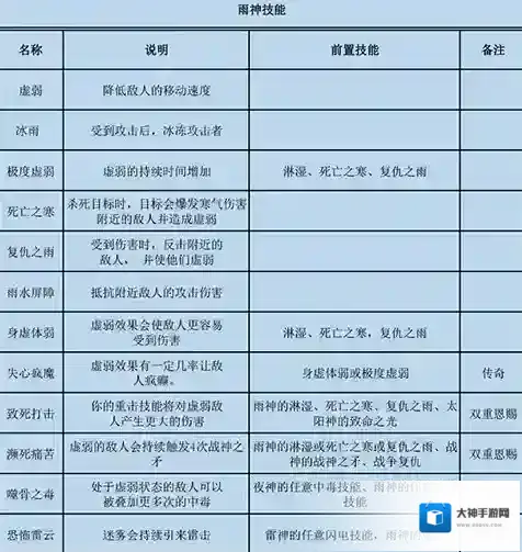 雨神技能是针对虚弱敌方或抵抗伤害而设计的。