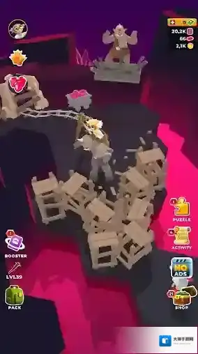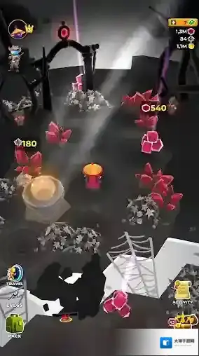2、游戏中玩家将会用自己的镐来无限的采集资源,能够开凿岩石、挖掘矿物和开采黄金,还能通过升级来提升效率。