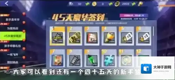 当签到进行到第45天时,玩家将会获得一张探索球员整卡任选礼盒。