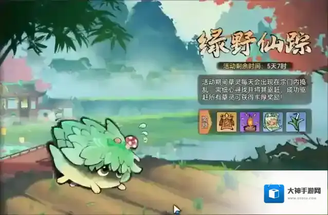 还有一个很重要的是限时开启的绿野仙踪,我们在去除杂草的过程中会触发草灵,十分钟去除三个草灵后即可成功,获得一个基础物资产量加成的buff,超时则认定失败,祖师的基础资源生产会被锁定一段时间,无法获得资源产出。我们需要的就是这个产量加成的buff。