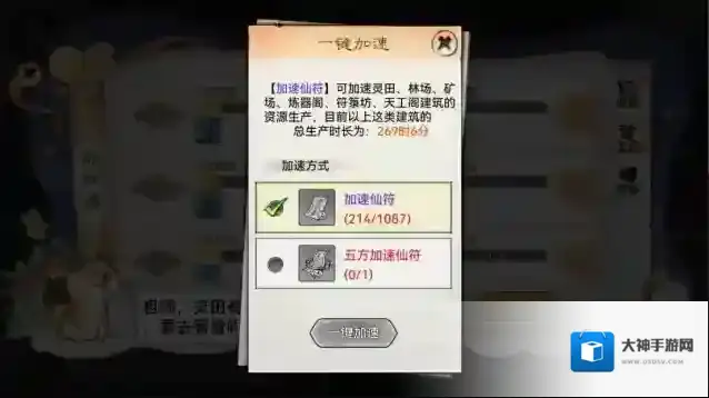 那么我们这么辛辛苦苦提高我们的资源产量有什么目的呢?聪明的祖师大人已经反应过来了,那就是小清瑶接下来说的重头戏了,也是产量获得第一的最高诀窍:在保证产量加成最高的情况下使用我们的加速仙符!!!