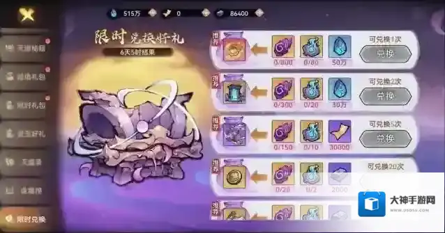 限时兑换里有坐骑、古宝和许愿币等等奖励,祖师老爷可以根据需求自由选择想要的奖励,小清瑶这里推荐有能力的情况下可以这么拿:红色古宝 坐骑 古宝 天道传书 浮生梦 古宝升星石 许愿币。