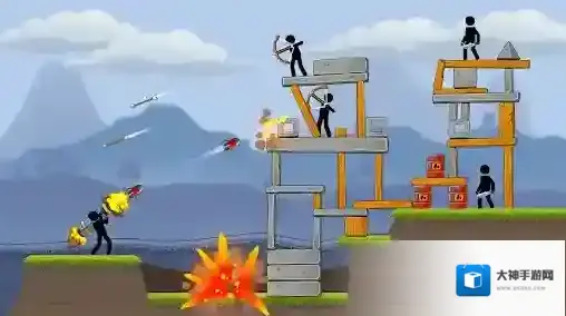 2、松手后即可将炮弹发射,击中塔楼或者敌人即可爆炸。
