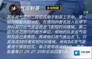 能以气制茶的茶气郎·苏乐来啦!刚柔并济、招式多变的他主打的就是一个出其不意~怎么说?这不得整杯气派制茶试试!详细技能介绍作为牵制位, 茶气郎·苏乐能通过简单的技能连招带远追捕,协助队友开门,又能通过技能与道具卡的配合,击倒追捕!还能以气运物叠高高~主动技能