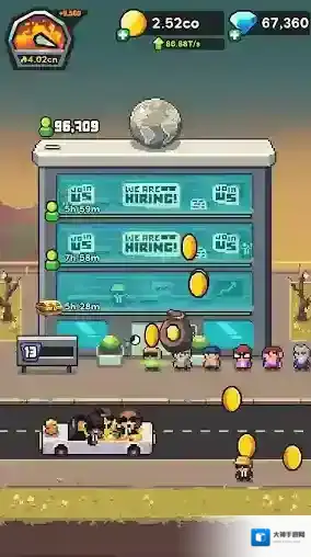 3、雇佣各种独特的自动矿工,自动化你的点击过程,还能不断的升级这些矿工,提高整体的采矿效率。