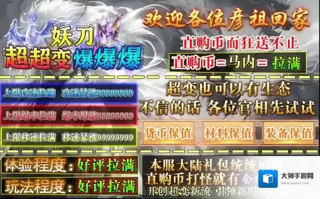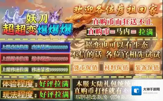妖刀超超变爆爆爆,195神器高爆单职业版本,零氪到底,白嫖到终极!上线攻速、爆率、移速直接拉满,打怪就能赚取直购币,可以兑换礼包,时间证明一切!本服所有大陆礼包统统可以靠打获得,并且货币、材料和装备全部都很保值,支持玩家之间自由交易,绝对的生态大服!来这里天天领充值,免费轻松过关,白嫖即可到终极,绝对让你玩的爽爽爽!