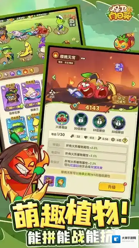对于输出型植物卡牌,玩家可以自由提升其技能并进行星级升级。