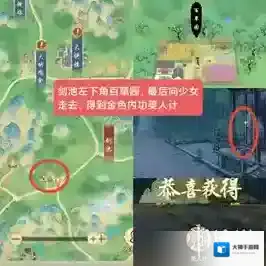 3、剑池左下角百草园,最后走向少女,可获得金色内功美人计。