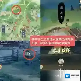 6、进入枫叶镇左上角后,选择猴儿酒,前面抵抗诱惑可获得10点精力。