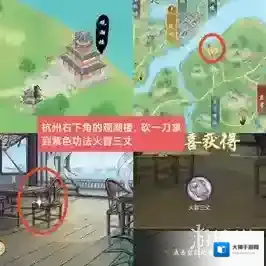 1、在杭州右下角的观楼处,砍一刀即可获得紫色功法火冒三丈。