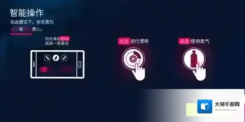 在此模式下,玩家可通过左右滑动屏幕来控制方向,点击屏幕使用氮气和漂移。