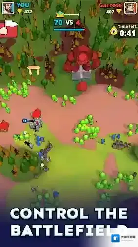 小小冲突(Tiny Clash!),由知名厂商Voodoo所推出的一款休闲塔防类手游。玩家将会踏入一个充满了战斗的惊险世界当中,与来自世界各地的玩家们展开激烈无比的1v1对战,在自己的领地上建造和部署各种独特的建筑,派遣各种强大的单位去进攻对手的领地,消灭所有敌人并占领对手的区域,取得最终的胜利!不断的去收集更多的资源,解锁更多的建筑和士兵,战胜更多强大的对手!