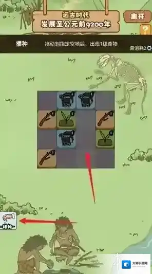 5、远古时代默认开放播种技能长按技能按钮拖拽至目标地格即可发动。