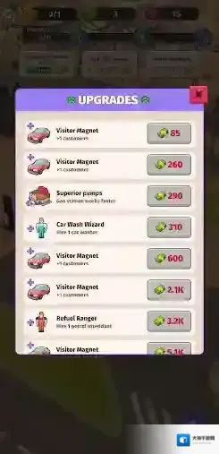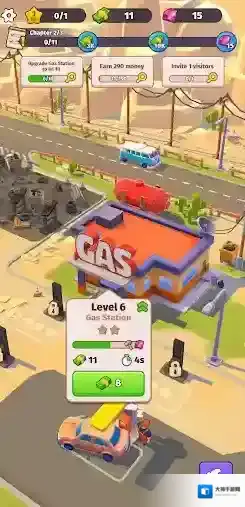 3、升级扩展你的加油站,招募更多的员工,不断地提升加油站的规模,建立起你的商业帝国。